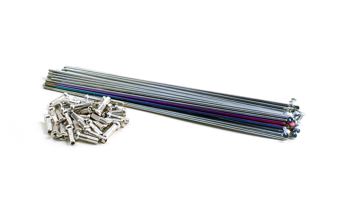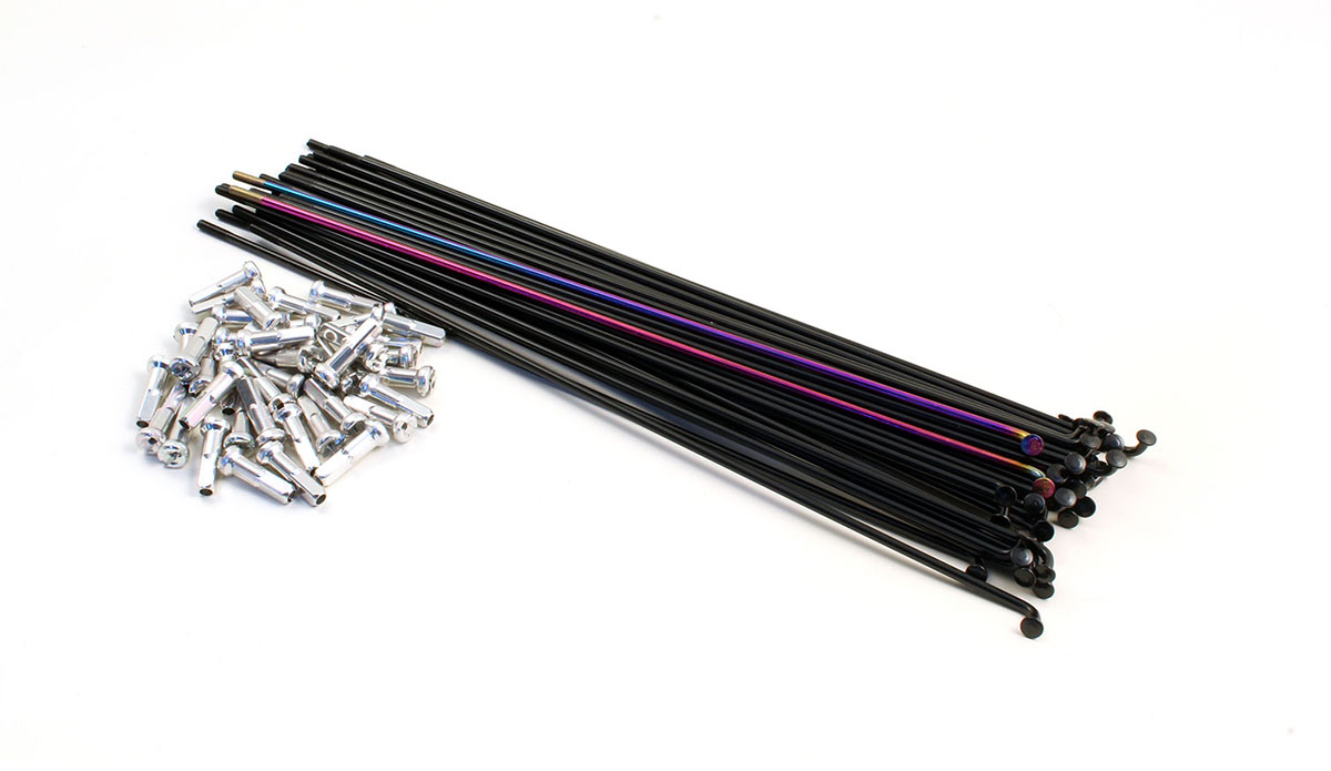 • Medidas: Paquete incluye 36 + 2 radios de color oil slick (en paquetes de radios negros o cromados). 180, 183, 186, 188 y 194. Cabecillas de 16mm.